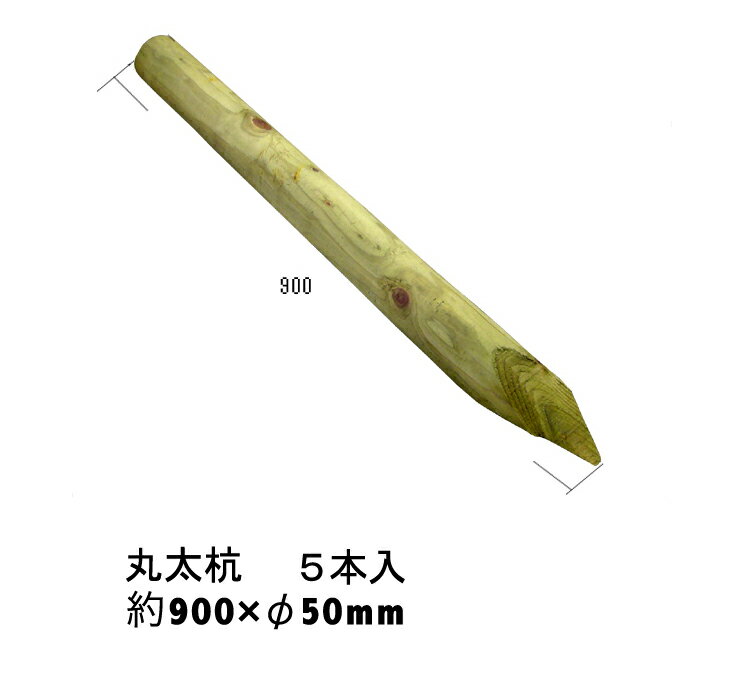 )(PCモニターの都合上、実物のお色と比べ若干濃淡の差が生じます) 仕様 :ACQ加圧注入防腐防蟻処理 サイズ:約900mm×φ50mm内外 重量 :約9kg(5本あたり) ※ダンボールや緩衝材など梱包資材は再利用品を使用させていただく場合があります。